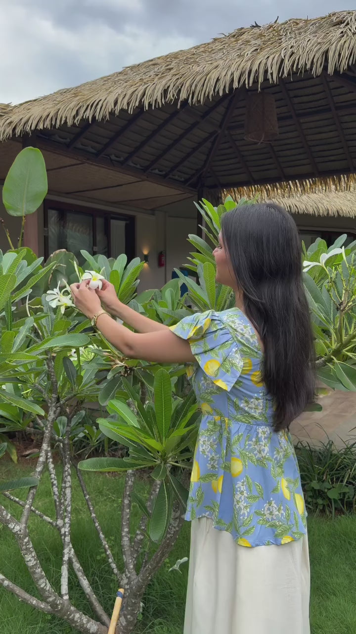 Made in soft, breathable cotton, this top has a smocked back, a gently flared peplum silhouette, and playful ruffle sleeves. The lemon-and-leaf print on the trending baby blue base feels like a sun-drenched escape to the Italian coast. Think effortless, feminine, and full of summer ease.