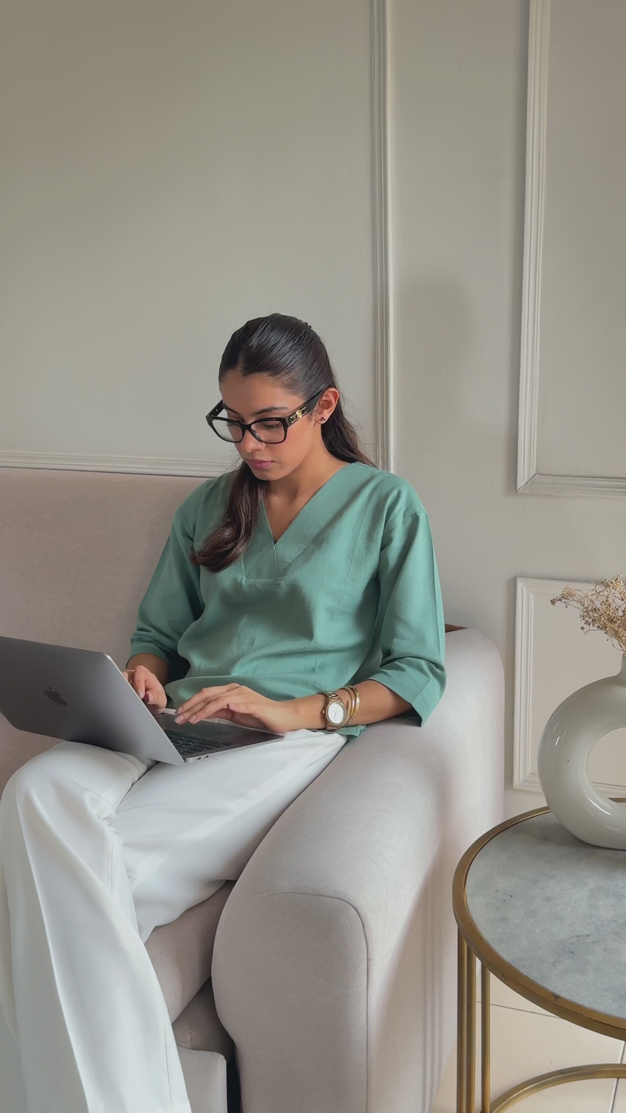 This wide V neck top is a quintessential for a classic wardrobe and another variant to our best-selling Pearl Top and Nuit Noire Top. The fit of the top is comfy with a straight cut and has 3/4th sleeves for added flexibility. Ocean Top is so comfortable that it can be worn to work, to shop, to lounge and you wouldn't want to come out of this top.